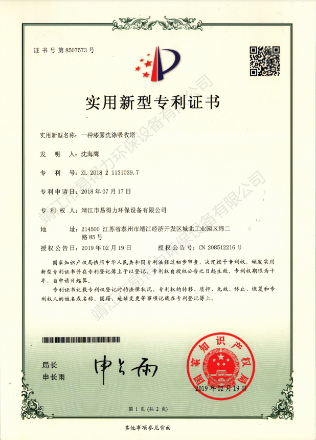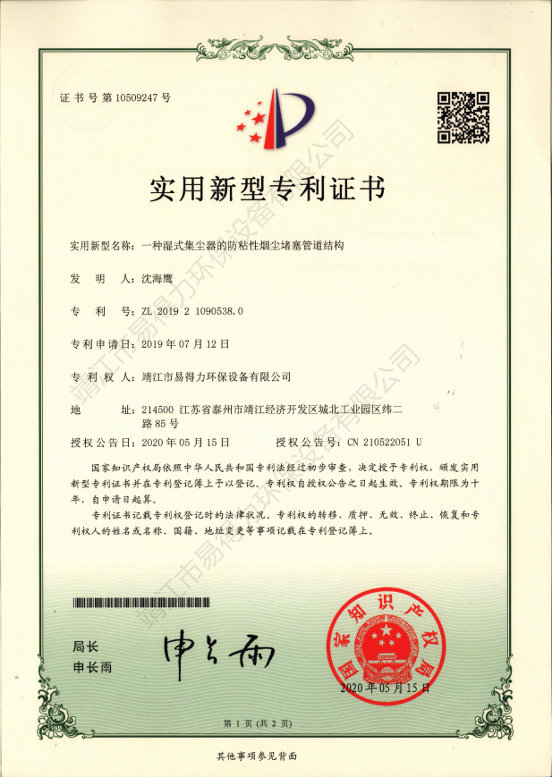 專利證書(shū)本公司坐落于開(kāi)放開(kāi)發(fā)超前城市江蘇靖江,我們精良優(yōu)秀設(shè)計(jì)團(tuán)隊(duì)始終遵循著創(chuàng)新超越的理念,贏得了中外合資企業(yè)的信賴。易得力環(huán)保設(shè)備有限公司與上海環(huán)科院等科研單位保持合作關(guān)系,不斷加大自身的科研力量,集中了一批國(guó)內(nèi)環(huán)境科技研究和應(yīng)用方面的高素質(zhì)人才,取得多項(xiàng)實(shí)用新型專利證書(shū)。…… 查看更多 >>